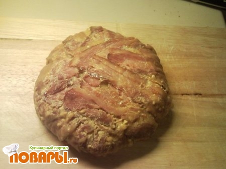 Красиво заворачиваем свисающие кончики бекона и отправляем в разогретую до 200 градусов духовку на 50-60 минут.