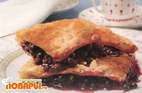 Затем уложите чернику, посыпьте ее сахаром по вкусу и накройте вторым пластом теста, края соедините