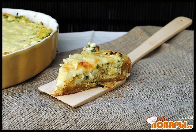 Пирог ну очень вкусный..очень мягкая по вкусу начинка. Только я сделала немного не по рецепту. Яйца я взбила без сметаны и добавила сразу в начинку. Сыр положила поверх начинки и сразу засунула в духовку.