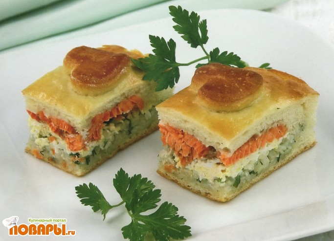 Пирог с семгой и рисом