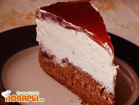 Отдельно взбить сливки до твердых пиков и смешать с творожной массой, добавить ваниль. Выложить массу на выпеченный корж и отправить пирог в холодильник на пару часов для застывания.