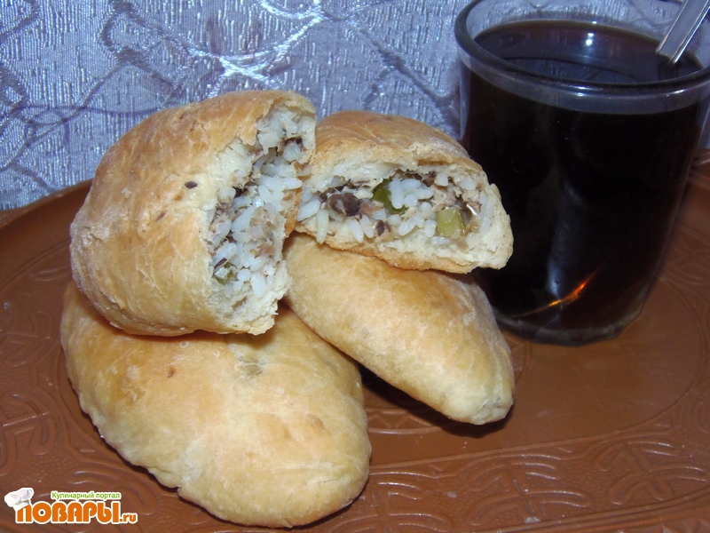 Выкладываем на противень и смазываем верхушку пирожков желтком, даем немного постоять, чтобы поднялось.