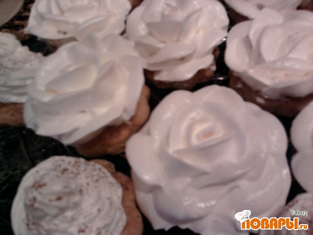 ОтветитьБелковый крем действительно вкусный и не жирный. А розочки делаются, как и для тортов, с помощью кондитерского шприца и насадки.