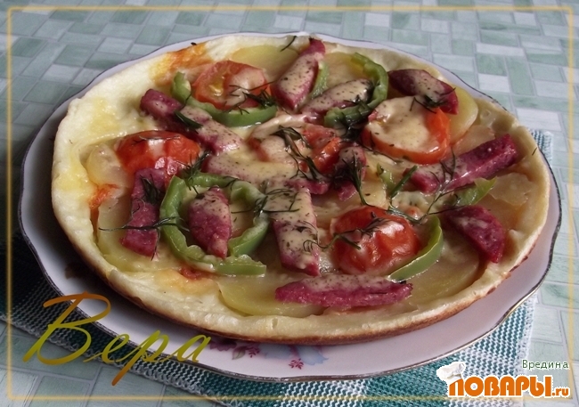 (Вареная картошка, колбаса, помидоры, сладкий перец, зелень, сыр).