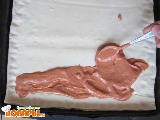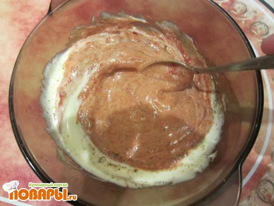Далее делаем соус. Для этого нам необходимо смешать томатную пасту, майонез, соль и перец (я еще добавляю приправу "Аджика").