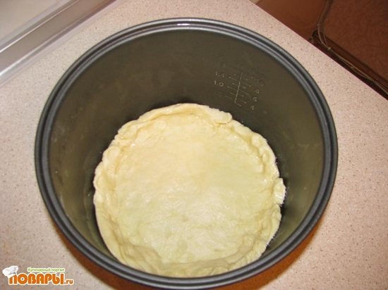 Дно мультиварки смазываем подсолнечным маслом, укладываем основу в мультиварку.
