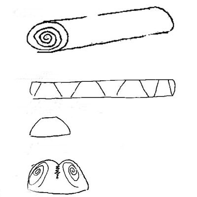 Разрезать на булочки как показано на рисунке