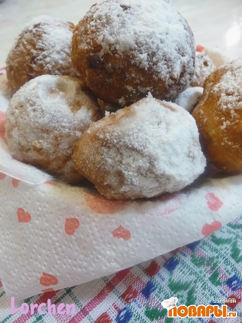 Растительное масло разогреть в глубокой сковороде. Смоченными в воде руками из теста скатать небольшие шарики и опустить их в масло. Жарить до румяности. Достать шумовкой и положить на сито, чтобы стек лишний жир.
