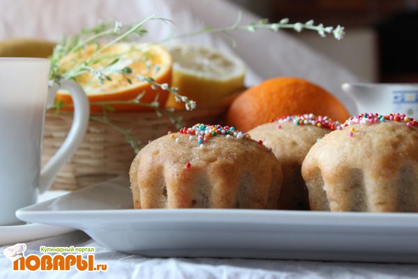 Рецепт подкинула Lilie из какого-то журнала. Делюсь теперь своим опытом приготовления. Сразу скажу, что глазурь по рецепту не вышла (предполагалось растереть сахарную пудру с соком лимона и минеральной водой), она была жидкой, прозрачной, но посыпка к ней прилипла. На форуме есть вариант лимонной глазури, когда взбивается 250 грамм сахарной пудры и 2 лимона (сок) до консистенции сливок. Судя по фото, хорошая выходит глазурь. Попробую ее позже.