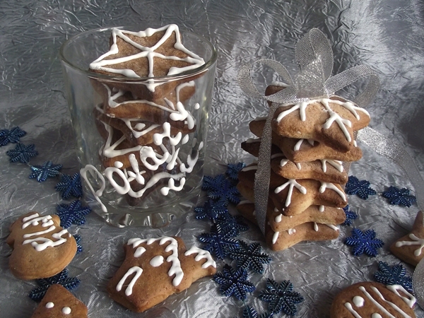 Для глазури: взбить белок с сахарной пудрой и парой капелек лимонного сока. Оставить печенье на пару часов, чтоб подсохла глазурь.