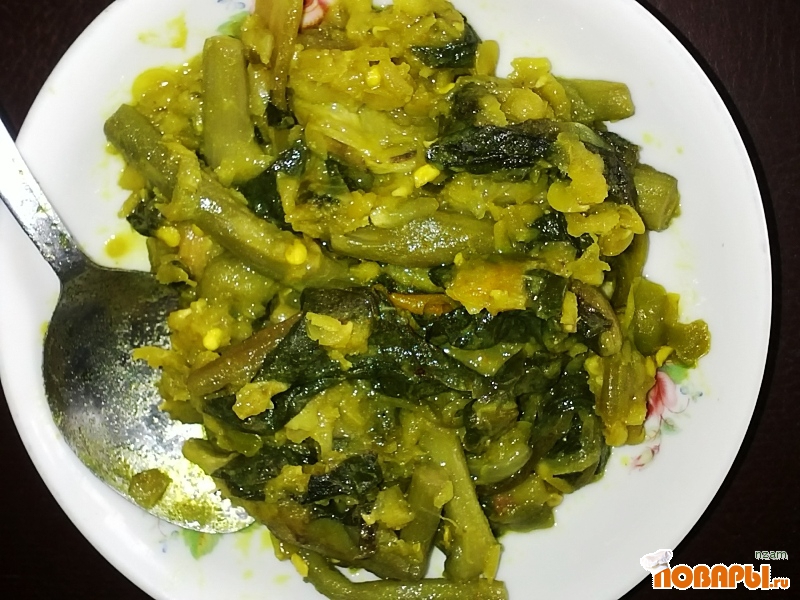Сложить все овощи в кастрюлю, добавить промытую чечевицу, соль, куркуму, тель и все это не сильно разминая перевешать рукой, добавить воды, что бы слегка закрывала овощи. Тушить на медленном огне до готовности чечевицы. В итоге почти вся жидкость должна выпарится.