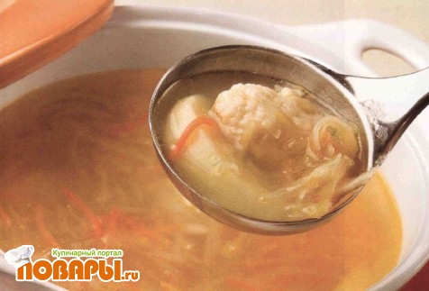 Морковь, лук и огурцы, очищенные от кожицы, нашинкуйте соломкой. Огурцы припустите в небольшом количестве бульона, морковь с луком обжарьте на масле. Для клецек муку смешайте с яйцом и молоком.