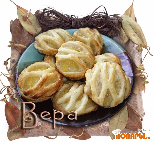 Смещая их в шахматном порядке. Немного растянуть пласт теста,