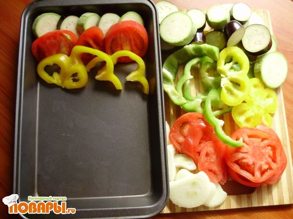 Укладываем слоями овощи в форму.