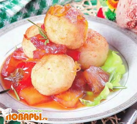 Рисовые биточки с ананасом в овощном соусе