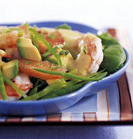 120 г риса, 200 мл овощного бульона, 1 баночка консервированной кукурузы, 150 г отварной или консервированной фасоли, 1 авокадо, 2 ст.л. лимонного сока, 2 помидора. Соус: 3 ст.л. лимонного сока, 3 ст. л. растительного масла (кукурузного), зелень петрушки, 1/2 перчика чили, соль, перец.