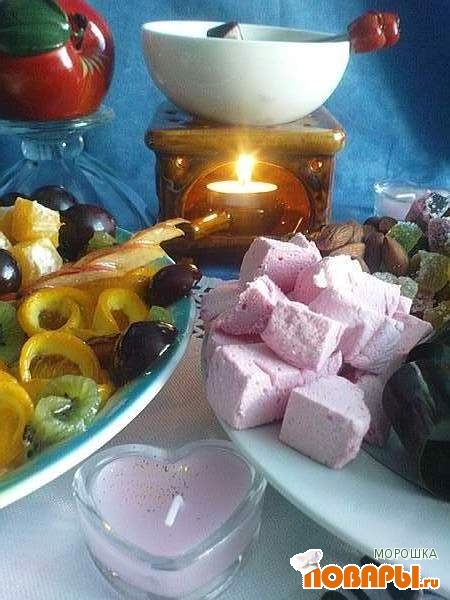 Не у всех есть настоящий набор для фондю.Его можно заменить арома-лампой,пиалкой обычной и набором десертных вилочек-шпажек.Это не так дорого, и в продаже встречается чаще.
