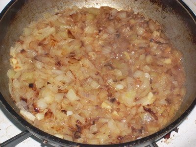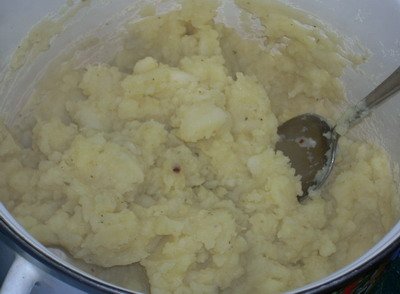 Смешиваем пюре, лук, добавляем побольше сливочного масла, соль и специи (я использую готовую «Приправу для картофеля»).