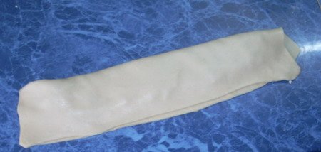 Из указанных продуктов замешиваем эластичное тесто и раскатываем его в форме прямоугольников.