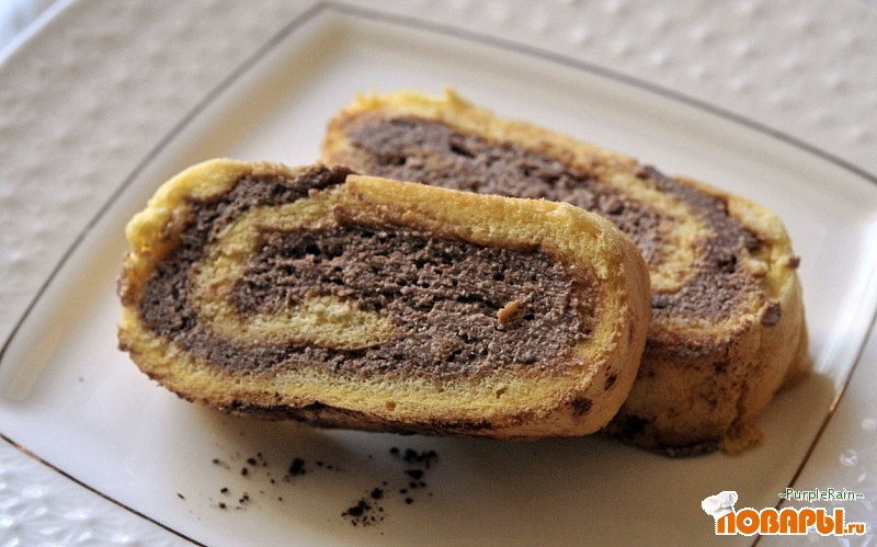 Если бисквит приготовился. Дайте ему немного о стыть, убедитесь, что он отлипает нормально от бумаги. Затем, сверху вложите подготовленный крем. Закрутите в трубочку- рулет. Если рулет по стоит в холодильнике, он будет более твердым и легко поддаваться резке, хотя, почему то мне кажется, что до холодильника рулет не доживет )))