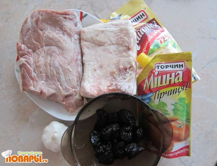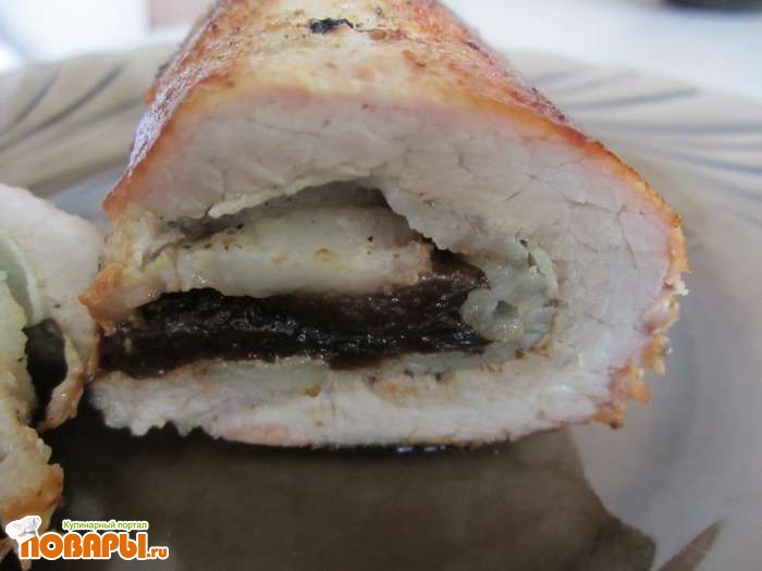 Рулет из свинины с черносливом и беконом