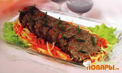 Рулет мясной с рисом и овощами
