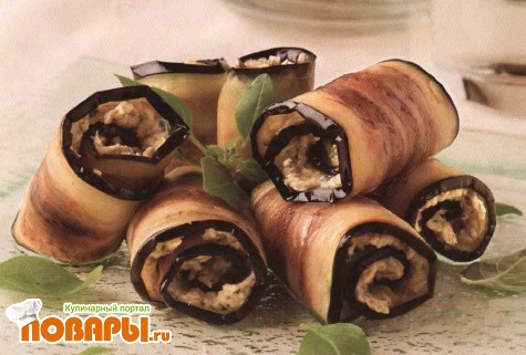 Баклажаны нарежьте вдоль тонкими ломтиками, посолите, выдержите 20 минут, затем промойте. Обжарьте баклажаны на масле, охладите.