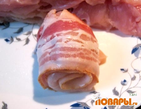 При приготовлении куриных грудок можно столкнуться с тем, что получаемое в итоге блюдо не такое сочное, как хотелось бы. В предлагаемом ниже варианте приготовления рулетиков, благодаря гармоничному сочетанию куриного белого мяса и аппетитного бекона, они получаются нежными и мягкими.