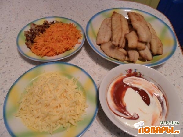 Рыба под майонезно-кетчуповым соусом (запеченная)