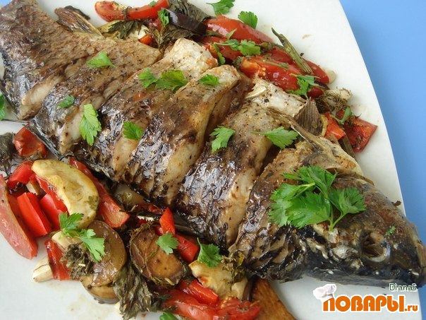 Рыба, запеченная под овощами