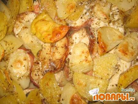 Мила, рыбка очень аппетитная вышла)) Только я бы все-таки перед запеканием рабрала бы её на филе - вкуснятину ведь хочется лопать сразу, а не обирать от костей, а потом лопать)))