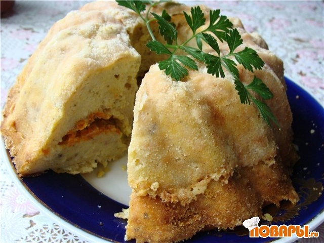 Морковь натираем на крупной терке, слегка притушиваем на растительном масле. Рыбный фарш делим на 2 части. Выкладываем часть в форму для запекания, потом притушеннуюморковь и оставшийся фарш.