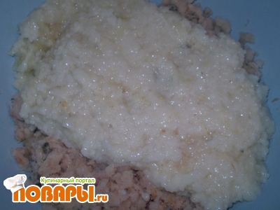 рис отварить и также перемолоть. Только, прежде чем перемолоть рис, его нужно хорошо процедить, чтоб он был сухой. Все ингредиенты перемешать, добавить перец, соль, яйца, для того, чтоб котлеты не распадались.