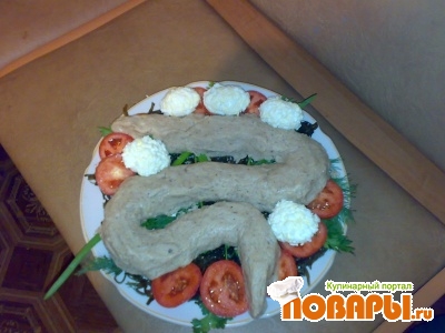 Змеиные яйца: 1 плавленый сырок натереть, добавить 1 тертый желток и 3 белка. Добавить майонез, соль, чеснок.