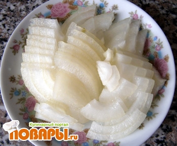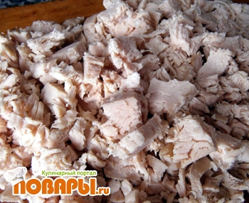Переходим к приготовлению блинчиков. Взбиваем, немного подсолив, одно-два яйца (количество зависит от диаметра сковороды). Поджариваем блинчики на сливочном масле до легкой румяной корочки. Переворачиваем и подрумяниваем с другой стороны. Такую операцию проделываем со всеми яйцами.