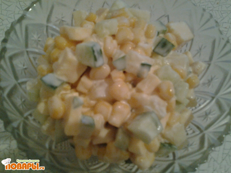 Очень люблю салаты с кукурузкой вот и решила порадовать себя и родных таким легким салатиком :)