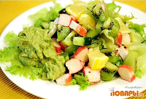 Теперь нам нужно приготовить авакадо. Это будет так сказать соус к нашему салату, его можно будет или перемешать с салатам, или намазать на тостеры и кушать с салатом. Хотя это дело не хитрое и можно вообще не делать соус из авакадо, как говорят «кашу маслом не испортишь».