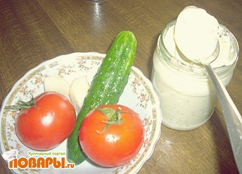 Складываем все в миску и перемешиваем осторожно, добавляя две ложки сметаны и одну ложку майонеза. Сметана дает нежность салату, а майонез - остроту. Майонез, кстати, я делаю сама.