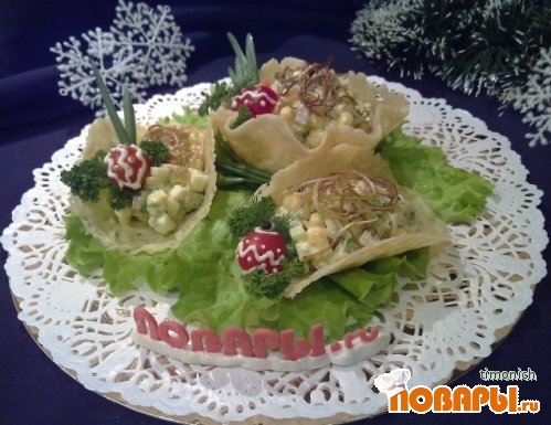 Салат «Оливье в корзинках»