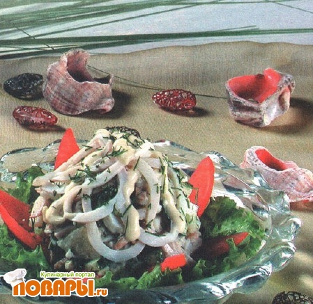 Салат грибной с кальмарами
