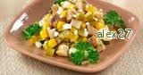 Репчатый лук нашинковать. Яйца отварить, очистить и измельчить. Подготовленные продукты смешать, добавить консервированную кукурузу, заправить майонезом.