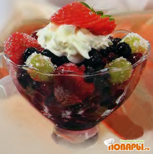 Перед подачей разложите ягоды в креманки, оформите взбитой сметаной.
