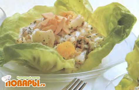 Изысканный вкус этому салату могут придать столовая ложка коньяку, щепотка мускатного ореха и корицы, добавленные в соус из йогурта и майонеза. Сочные ломтики апельсина смягчают вкус трески и придают фруктовый аромат этому необычному рисовому салату.