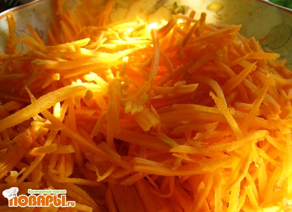 Морковку помыть и очистить от кожицы. Главное, чтобы она была сладкая и сочная (лучше выбирать молоденькую). Натереть на терке для приготовления морковки по-корейски (если таковой нет, то на крупной).