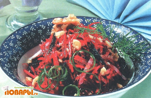 Сырую свеклу натирают на терке, лук шинкуют, чернослив варят и мелко нарезают, изюм распаривают и охлаждают.