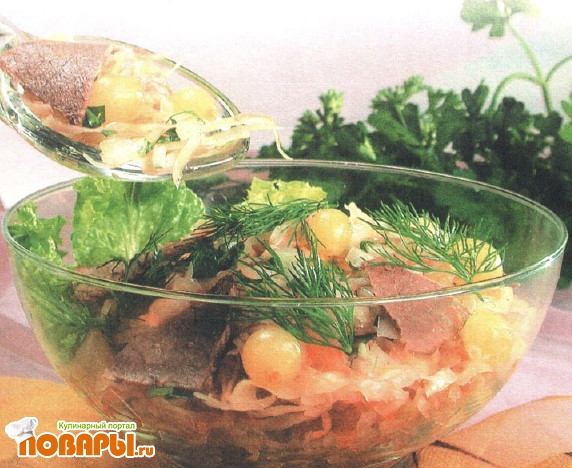 Салат мясной с квашеной капустой