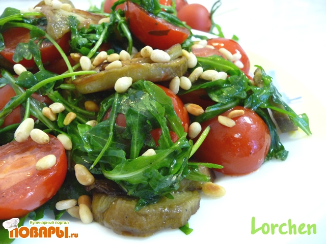 Салат с баклажанами и рукколой