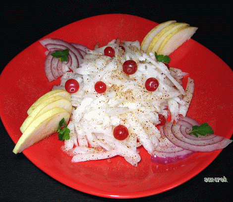Салат с дайконом, грушей и клюквой