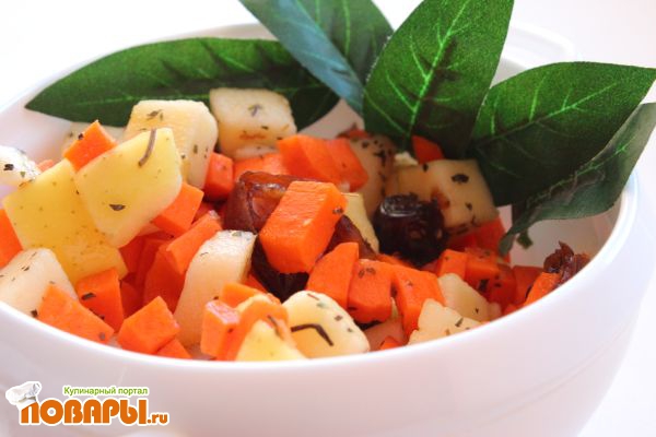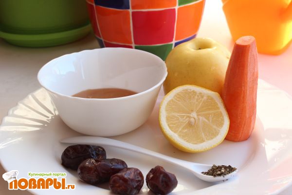 Салат с яблоком, финиками, морковью и петрушкой