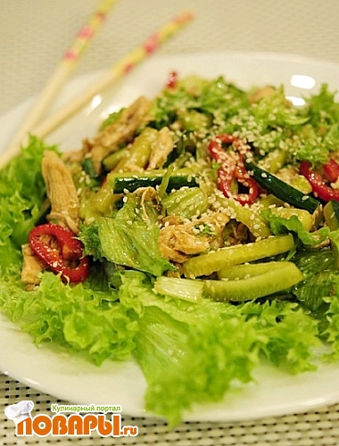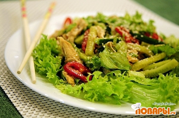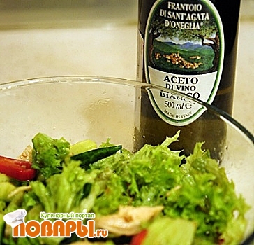 Подавать салат надо быстро и кушать сразу, пока он еще теплый!